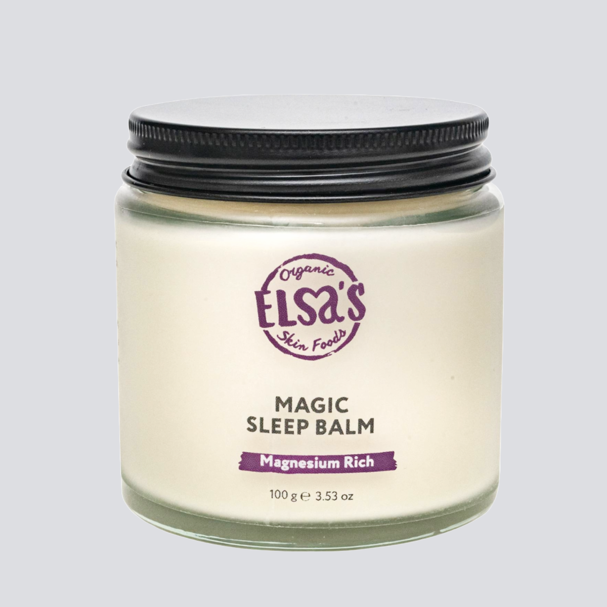 Elsa’s Magic Sleep Balm, a magnesium-rich, vegan aromatherapy balm with Lavender, Valerian Root, and Rose Absolute, promotes relaxation, better sleep, reduced stress, and boosted immunity—suitable for all.